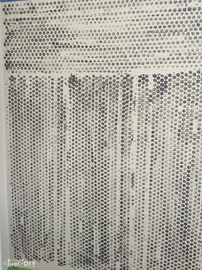 Then it was time for the wall. I started with the dark gray and then when it dried, went over it with the lightest gray for the second coat.