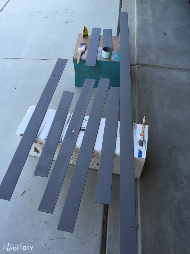 I mixed the Behr medium gray paint with BB Frosch chalk paint powder for the rails. I love painting with chalk paint, and for this project I wanted to hide the imperfections in the wood and try to create more of a metal look.