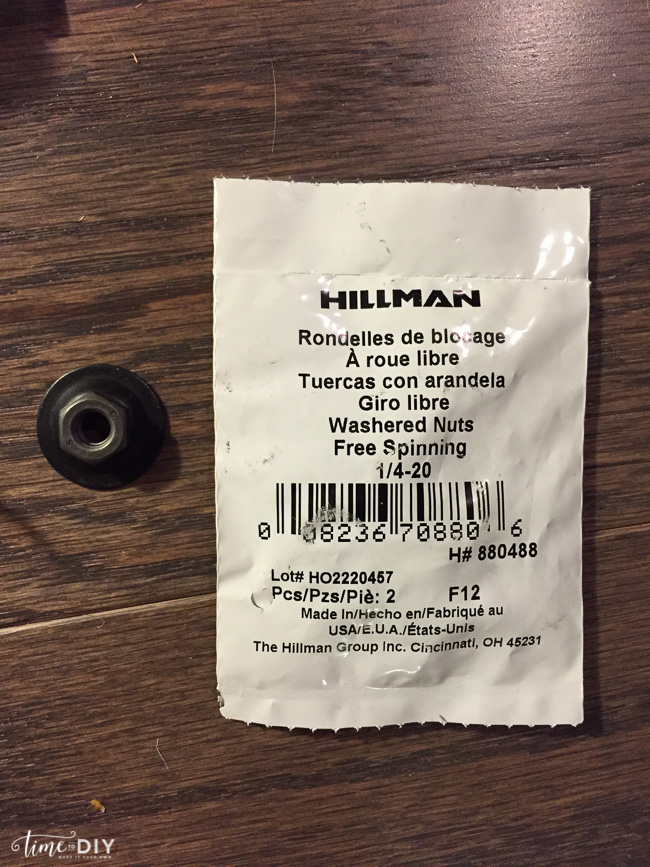 Then I needed to spruce it up with some bolts. So I went to Lowe’s hardware section, and after quite the search, found a few cool things. Gorilla glue worked well with these.